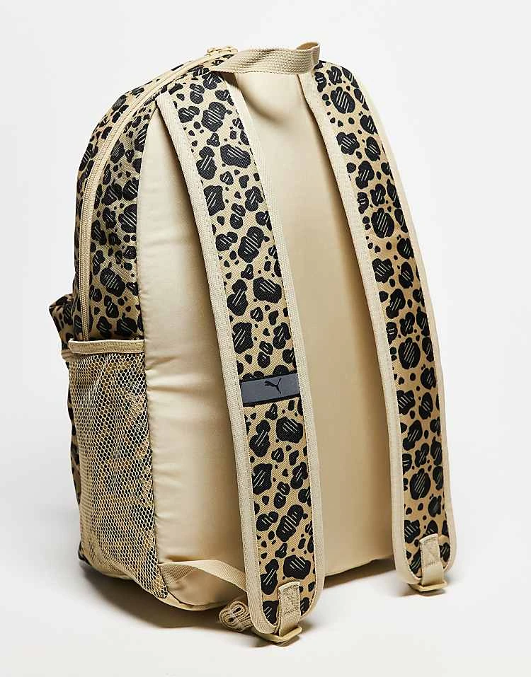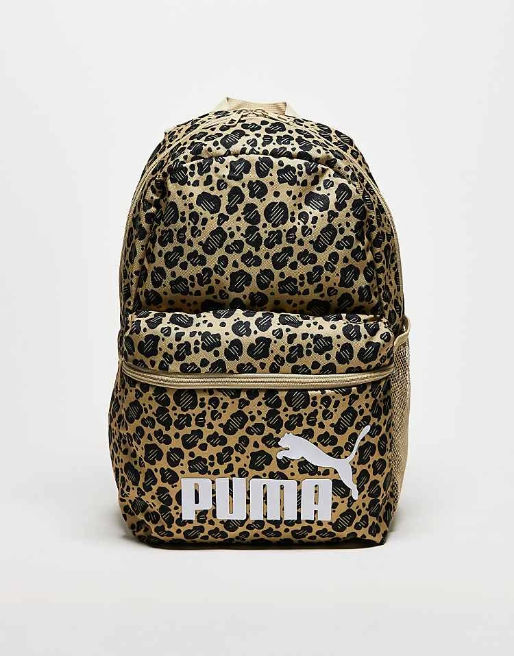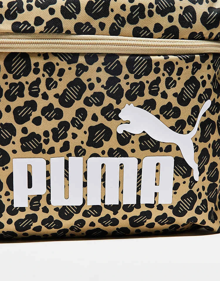 Puma Phase Logo Backpack In Leopard Print For Unisex Toasted Almond-animal-aop